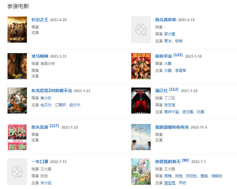 代表作品:反轉(zhuǎn)人生、煎餅俠、無名之輩、28歲未成年、妖鈴鈴、猛蟲過江