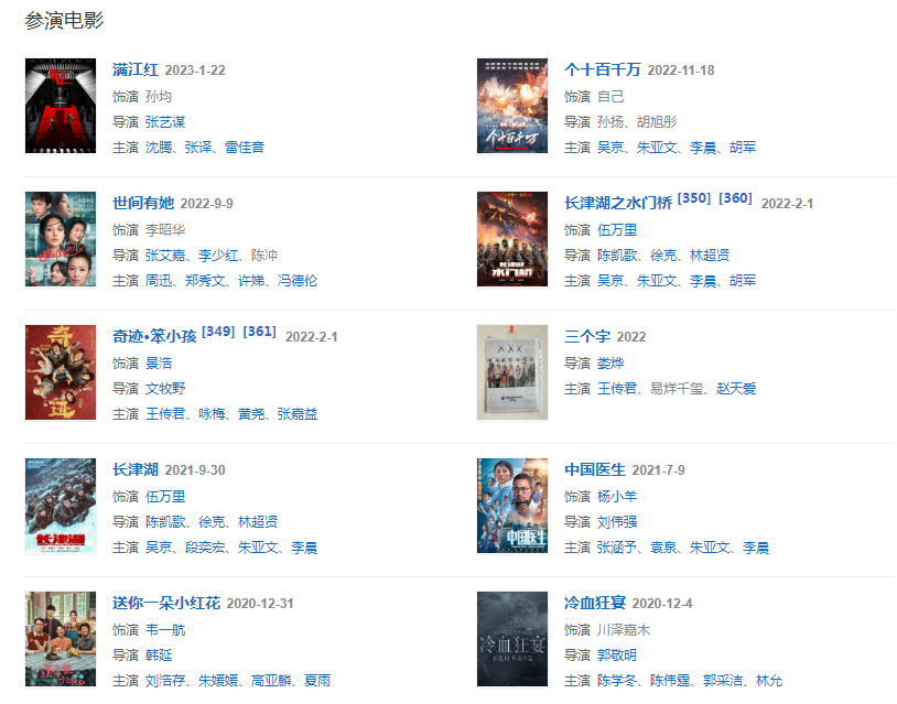 代表作品:少年的你、送你一朵小紅花、長津湖、奇跡·笨小孩、長安十二時辰、這!就是街舞、溫差感、我樂意沉默釋放內(nèi)心焰火、后座劇場