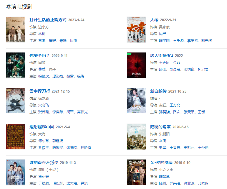 代表作品:隱秘的角落、山河故人、再見吧!少年、西小河的夏天、秘密訪客、云上日出、大軍師司馬懿之軍師聯(lián)盟