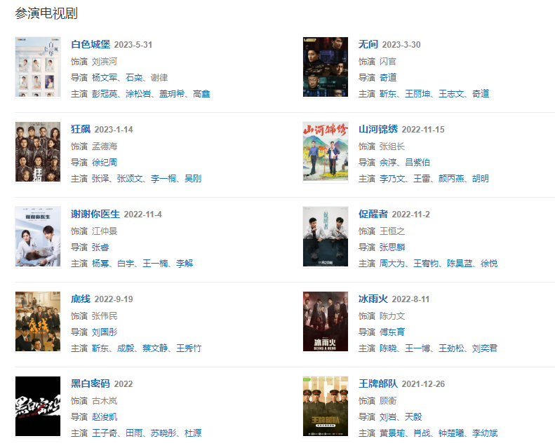代表作品:人間正道是滄桑、毒刺、國(guó)門英雄、桐柏英雄、人民的名義、大清鹽商等