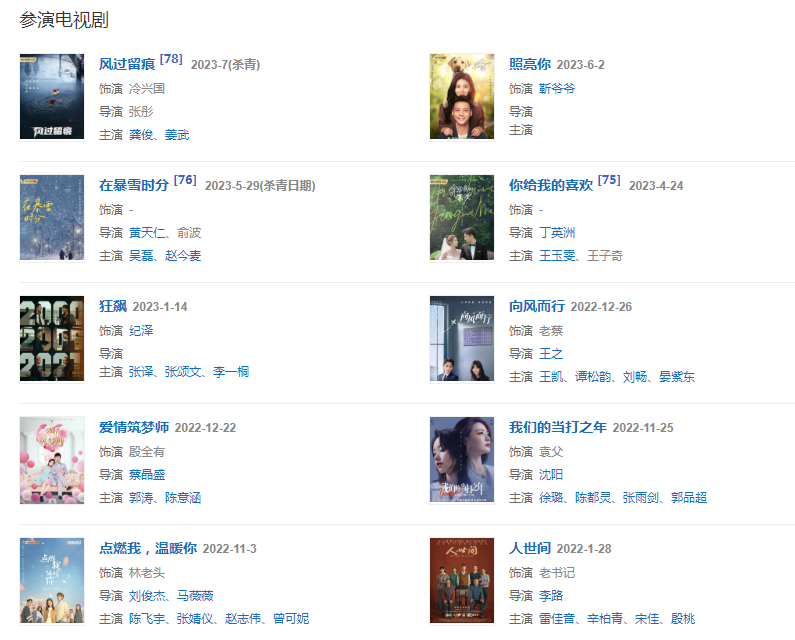 2022年1月5日,參演的都市家庭情感劇《完美伴侶》播出;1月28日,參演的現(xiàn)實主義題材大劇《人世間》播出。