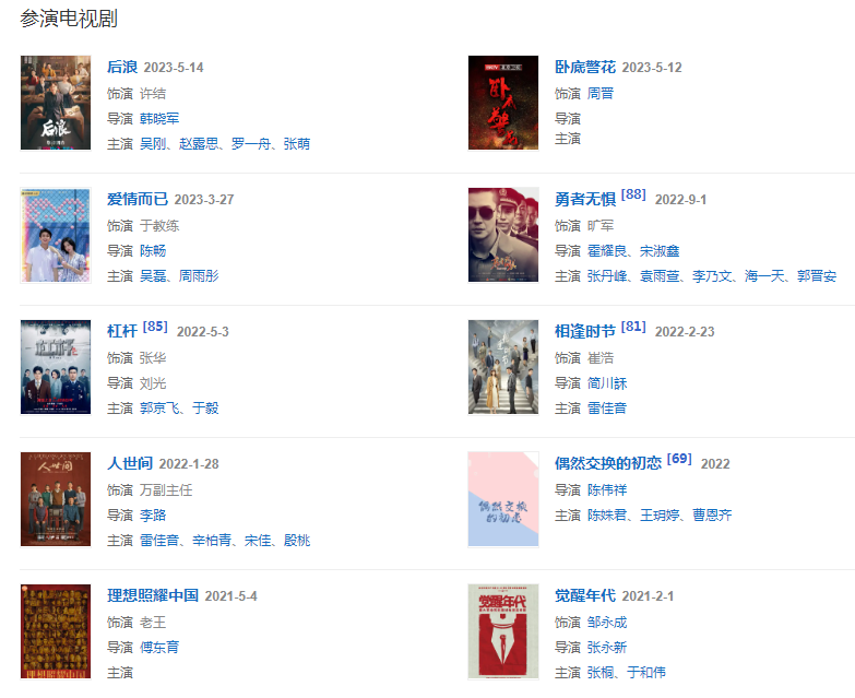 202121日,出演的《覺(jué)醒年代》播出,在劇中飾演鄒永成。54日,主演電視劇《理想照耀中國(guó)》開(kāi)播,在《冰糖》單元飾演隱姓埋名的科學(xué)家老王。12月,主演軍事題材影片《戰(zhàn)神訣》。