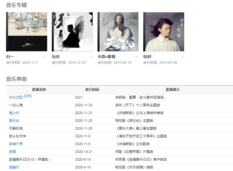 2020年,在愛奇藝自制華語唱作人生態(tài)挑戰(zhàn)節(jié)目《我是唱作人第二季》中擔任首發(fā)嘉賓,并發(fā)行全創(chuàng)作專輯《歸一》;同年擔任廣東衛(wèi)視《國樂大典第三季》嘉賓“尋樂人”。