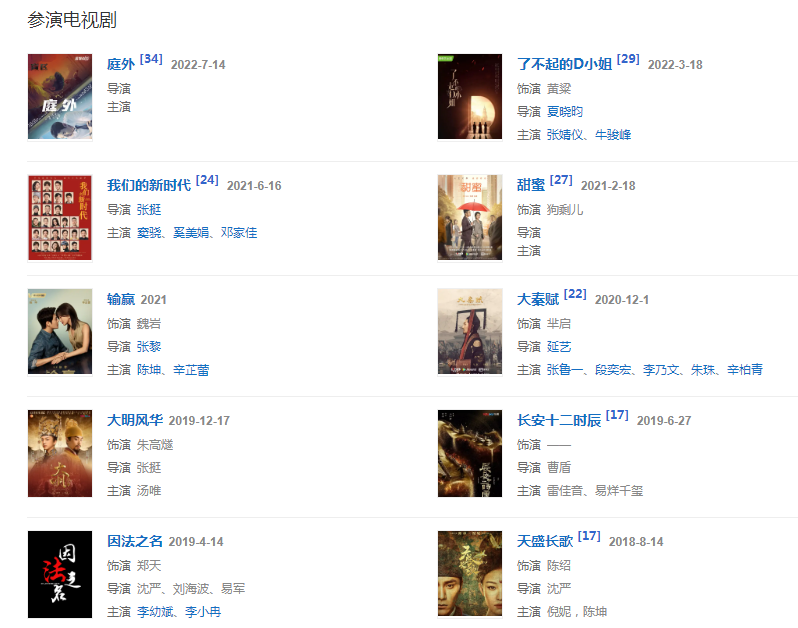 2021218日,參演的都市情感劇《甜蜜》播出  ;616日,參演的電視劇《我們的新時(shí)代》播出。