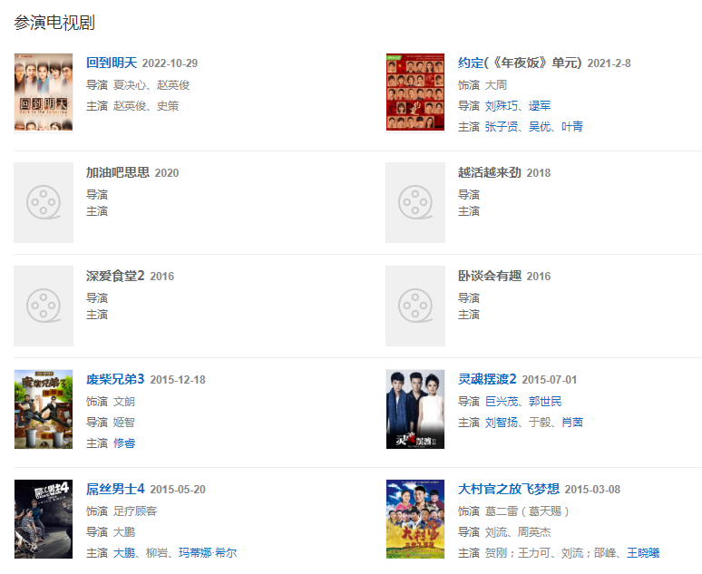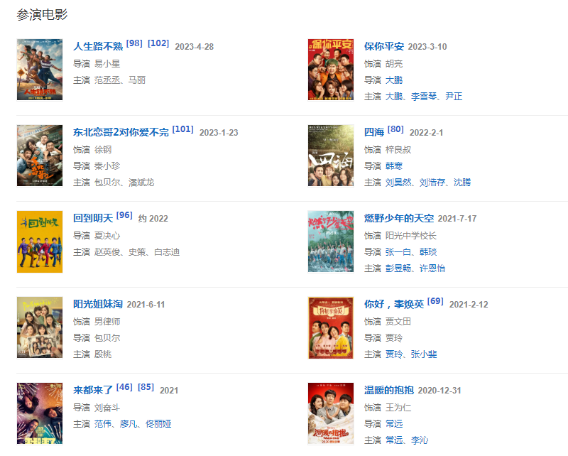 2021年,參演電影《你好,李煥英》,在片中飾演賈玲父親賈文田。2021年出演韓寒導演作品《四?!罚n2022年大年初一。