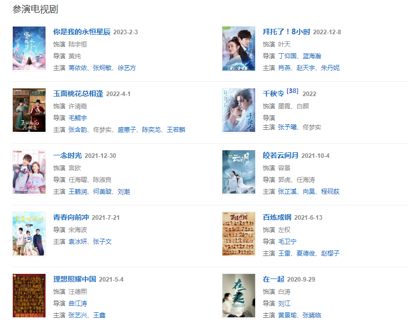 代表作品艷骨、慶余年、皓鑭傳、青云志、神雕俠侶、一念時光、皎若云間月、青春二月當艷陽、熱血狂籃