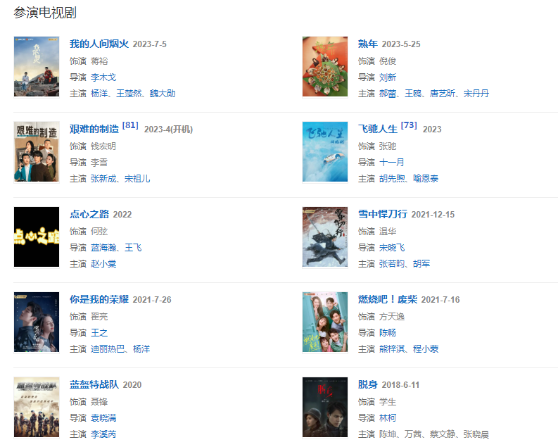 代表作品緊急救援、火鍋英雄、楚喬傳、無心法師