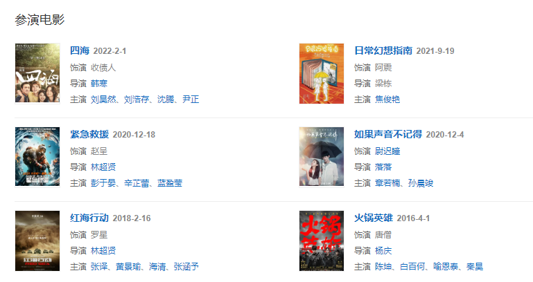 2020124日,出演電影《如果聲音不記得》 ;1218日,與彭于晏、辛芷蕾合作主演的電影《緊急救援》上映,在片中飾演交通海上應(yīng)急反應(yīng)特勤隊(duì)絞車手趙呈 。