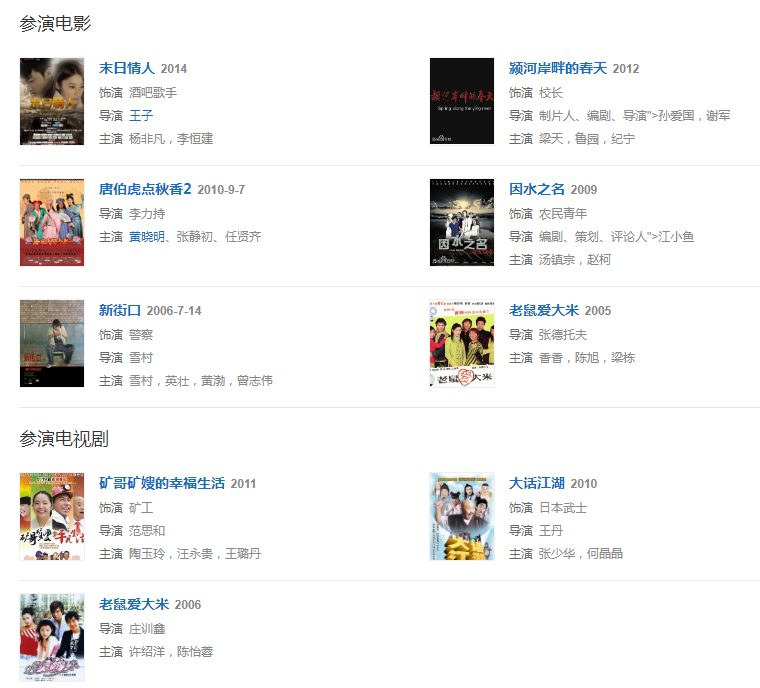 2005年憑借《老鼠愛大米》獲得新城國語力網(wǎng)路歌曲大獎、華語音樂傳媒大獎最佳網(wǎng)絡(luò)歌曲獎; 同年出演電視劇《老鼠愛大米》  ,出版小說 《老鼠愛大米》 ;