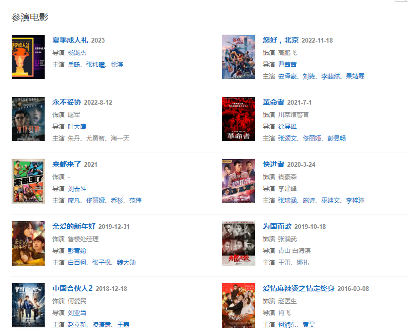 20188月,參與北京衛(wèi)視綜藝《跨界喜劇王》第三季。同年,主演電影《大鱷之門》及《國(guó)之歌者》 。