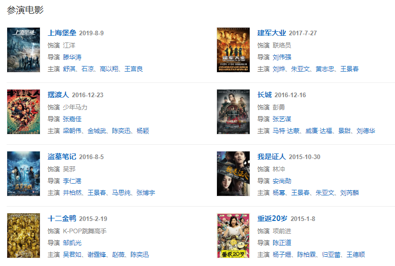 2016年,主演的電影《盜墓筆記》《長城》上映 。同年,登上“中國9010大影響力人物”榜首,并以2.7億財(cái)富居2016“中國90后富豪榜”第五位  。