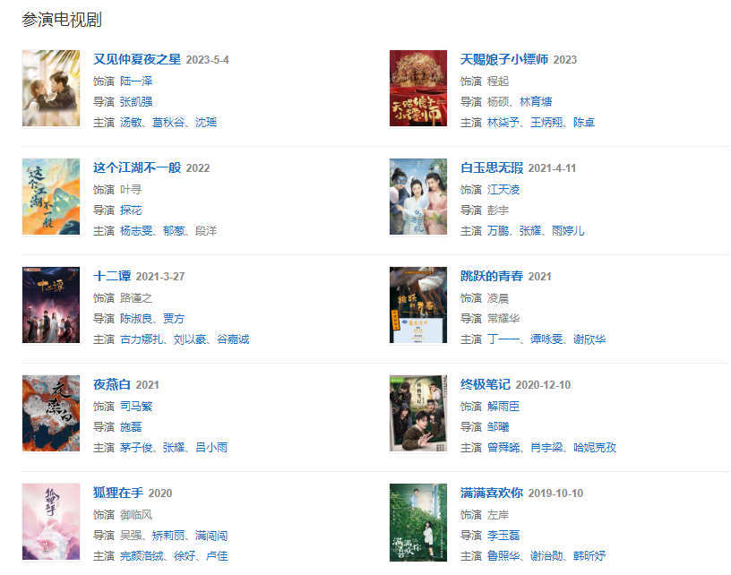 2021327日,參演的民國愛情劇《十二譚》播出,在劇中飾演路謹(jǐn)之 ;