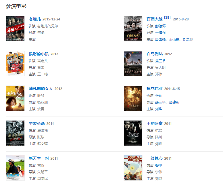 2015年主演抗戰(zhàn)史詩(shī)電影《百團(tuán)大戰(zhàn)》飾演彭德懷一角。 同年主演電視劇《生死血符》。