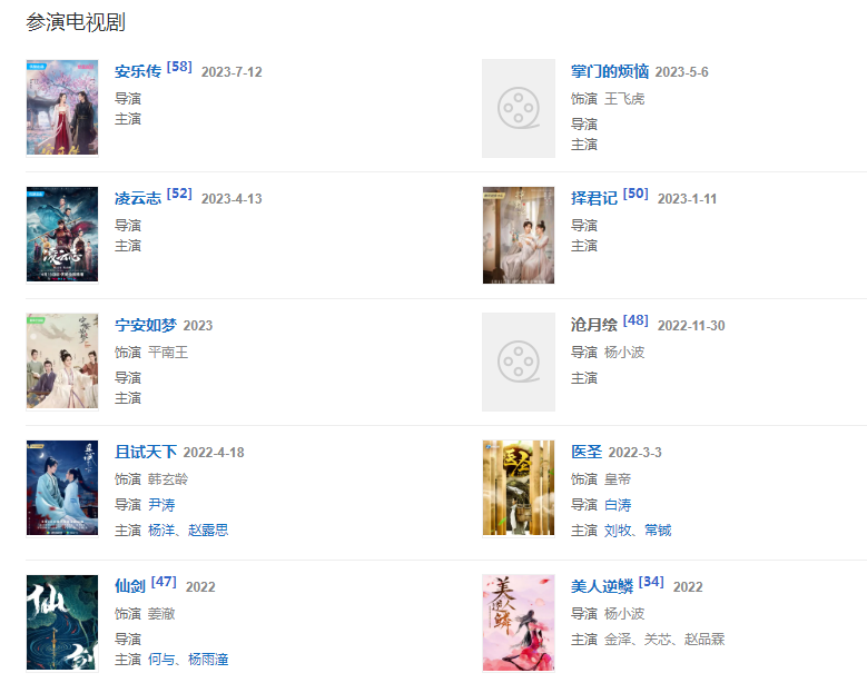 2019年12月,主演電視劇《劍王朝》在愛奇藝上線。