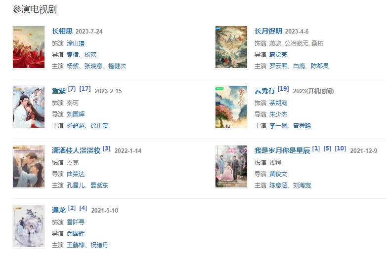 2023年4月6日,參演電視劇《長月燼明》,在優(yōu)酷播出。