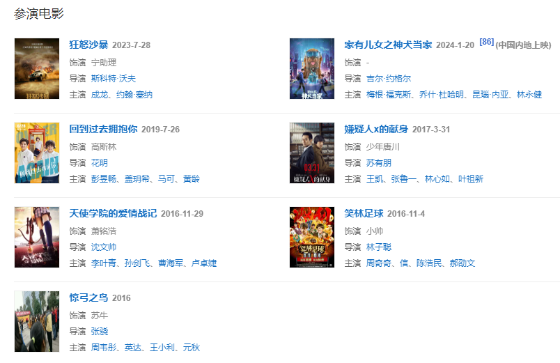 2024年1月20日,參演的電影《家有兒女之神犬當(dāng)家》在中國內(nèi)地上映。2月24日,參演的電視劇《逍遙》發(fā)布海報(bào)。