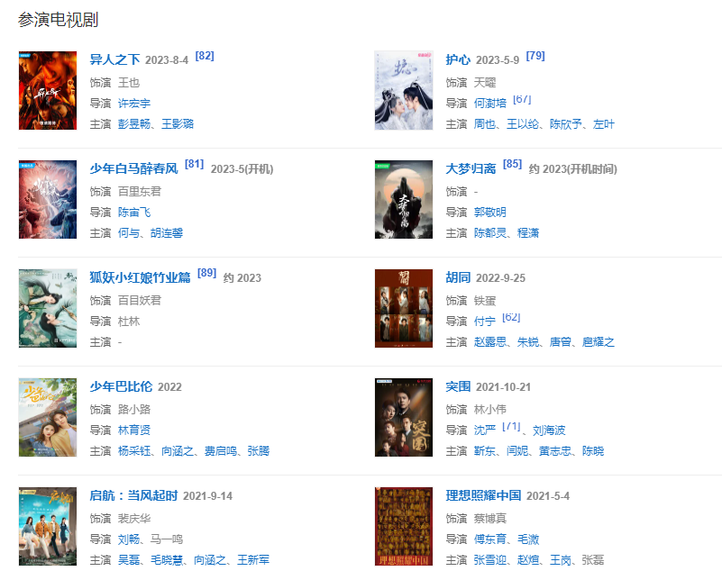2023年5月9日,與周也合作主演的古裝虐戀電視劇《護(hù)心》播出;8月4日,主演的都市奇幻梗劇《異人之下》播出;7月28日,主演的電影《狂怒沙暴》上線。12月5日,參演的電視劇《狐妖小紅娘竹業(yè)篇》殺青,在劇中飾演百目妖君。
