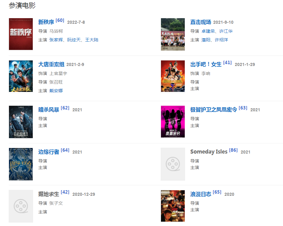 2022415日,參演的犯罪動作電影《邊緣行者》上映;78日,友情出演的犯罪動作電影《新秩序》上映