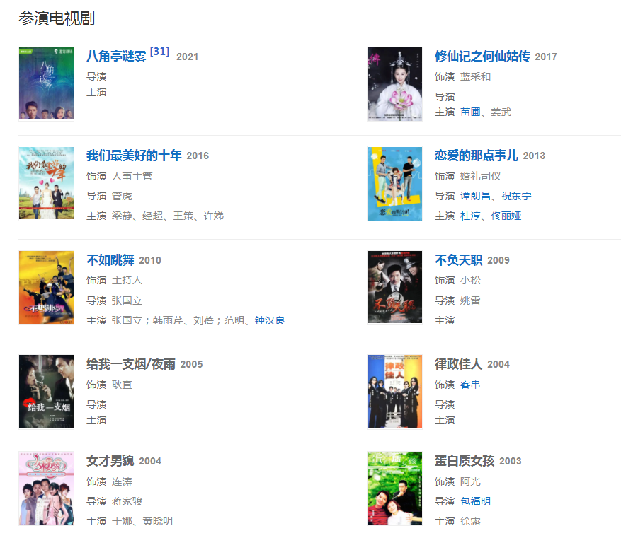 20211月,加盟湖南衛(wèi)視喜劇類節(jié)目《百變大咖秀第六季》;參演電視劇《八角亭謎霧》。