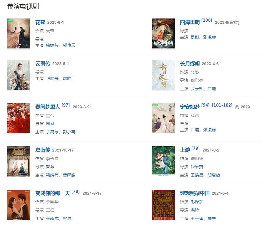 代表作品:西游記后傳、武林外史、隋唐英雄傳、新水滸傳、王中王、萍蹤俠影、開天辟地