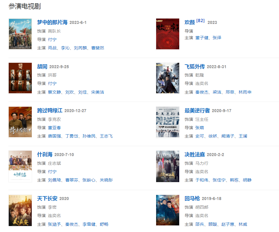 2020年,主演家庭都市劇《嗨,什剎海》,劇中飾演能聊善侃、重情重義的莊志斌  1227,出演的重大革命歷史題材劇《跨過鴨綠江》在CCTV-1黃金時間首播。