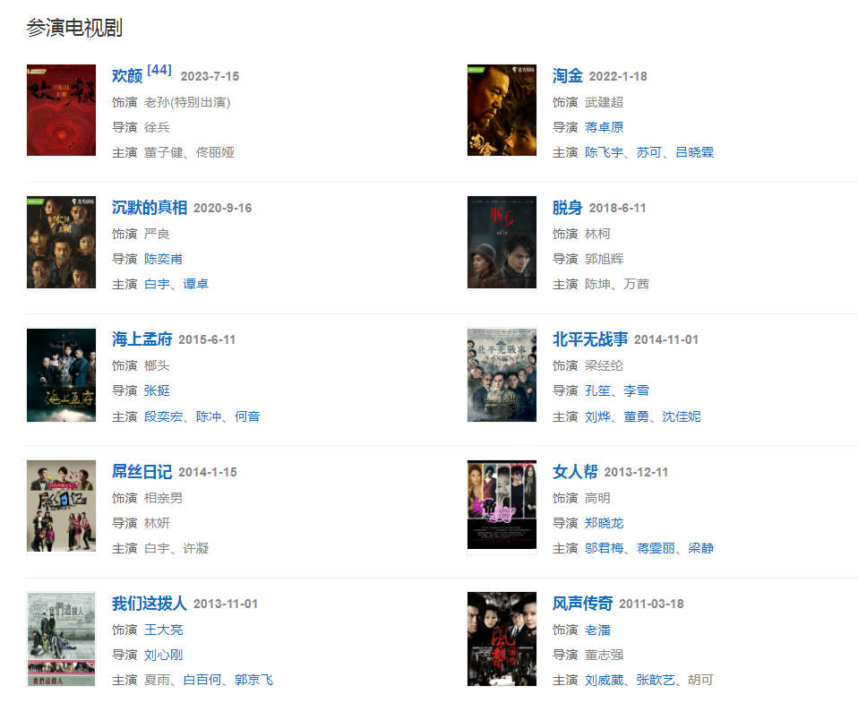 2020916日,主演的懸疑劇《沉默的真相》播出,在劇中飾演專案組副組長嚴良。