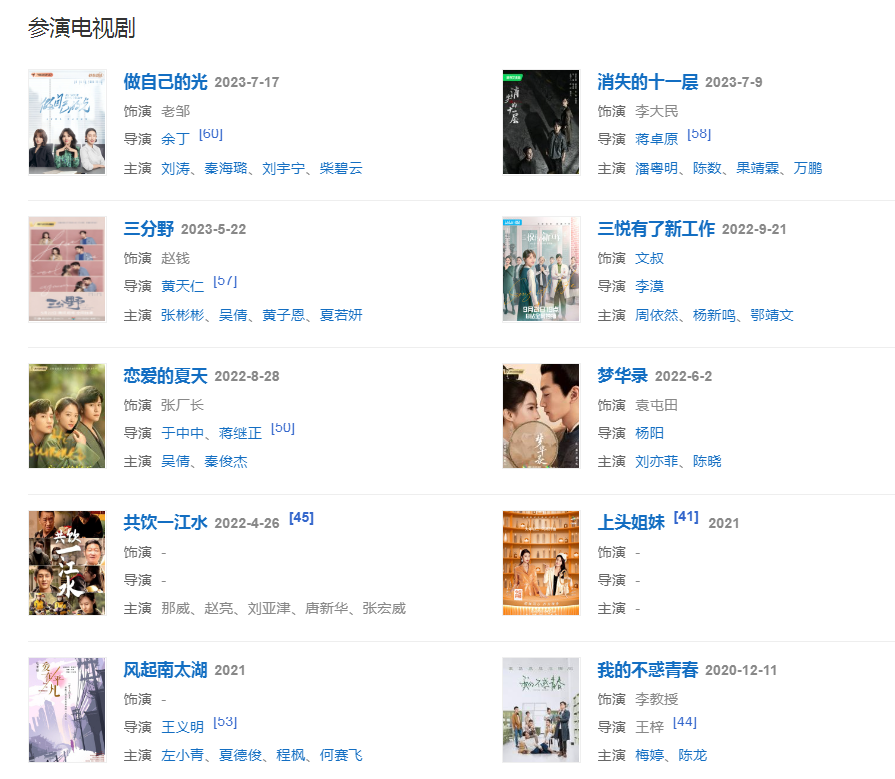2022年4月26日,參演的電視劇《共飲一江水》播出;6月2日,參演的的女性愛(ài)情勵(lì)志劇《夢(mèng)華錄》播出 。