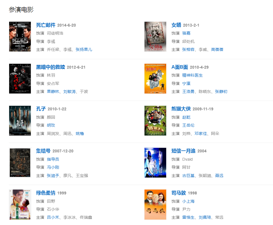 主要成就:2002年第1屆中國(guó)“雙十佳”演員稱號(hào)