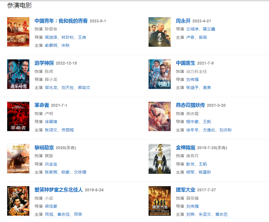 2022211日,出演的主旋律電影《周永開》殺青;4月,參演電影《中國青年:我和我的青春》。