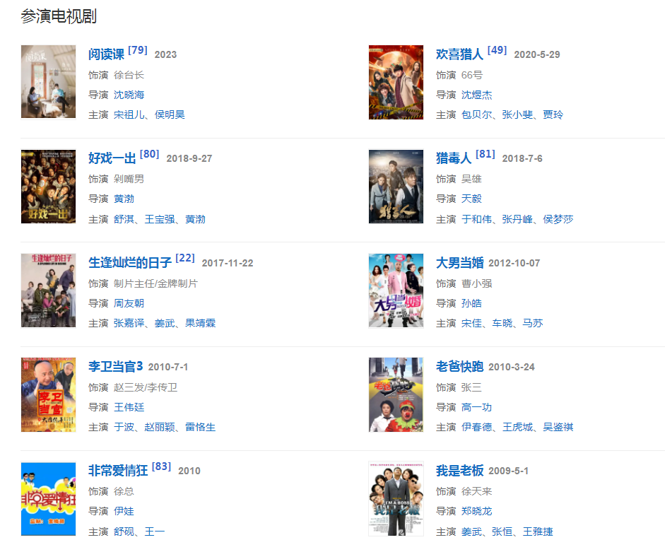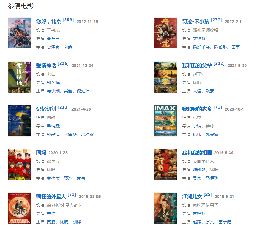 代表作品:人再囧途之泰囧 、港囧、人在囧途、我不是藥神、無人區(qū)、心花路放、催眠大師、春光燦爛豬八戒、李衛(wèi)當官