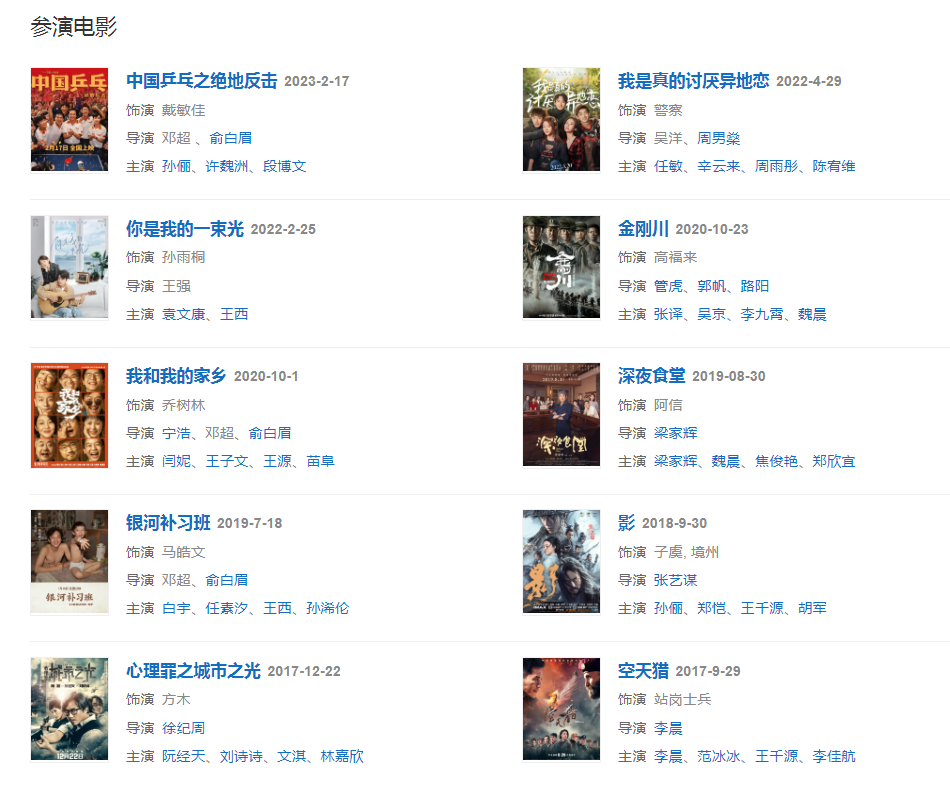 業(yè):演員、導(dǎo)演、配音、歌手、主持人、投資出品人