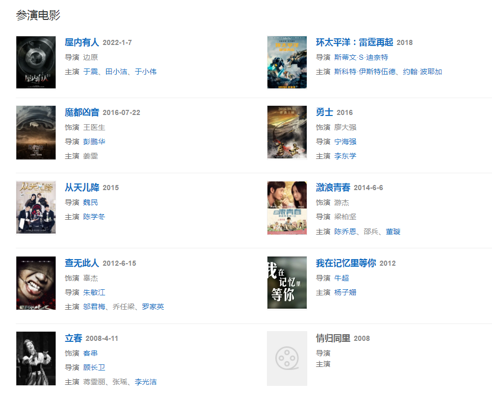 代表作品:闖關東前傳、偏偏愛上你、門·第、男才女貌