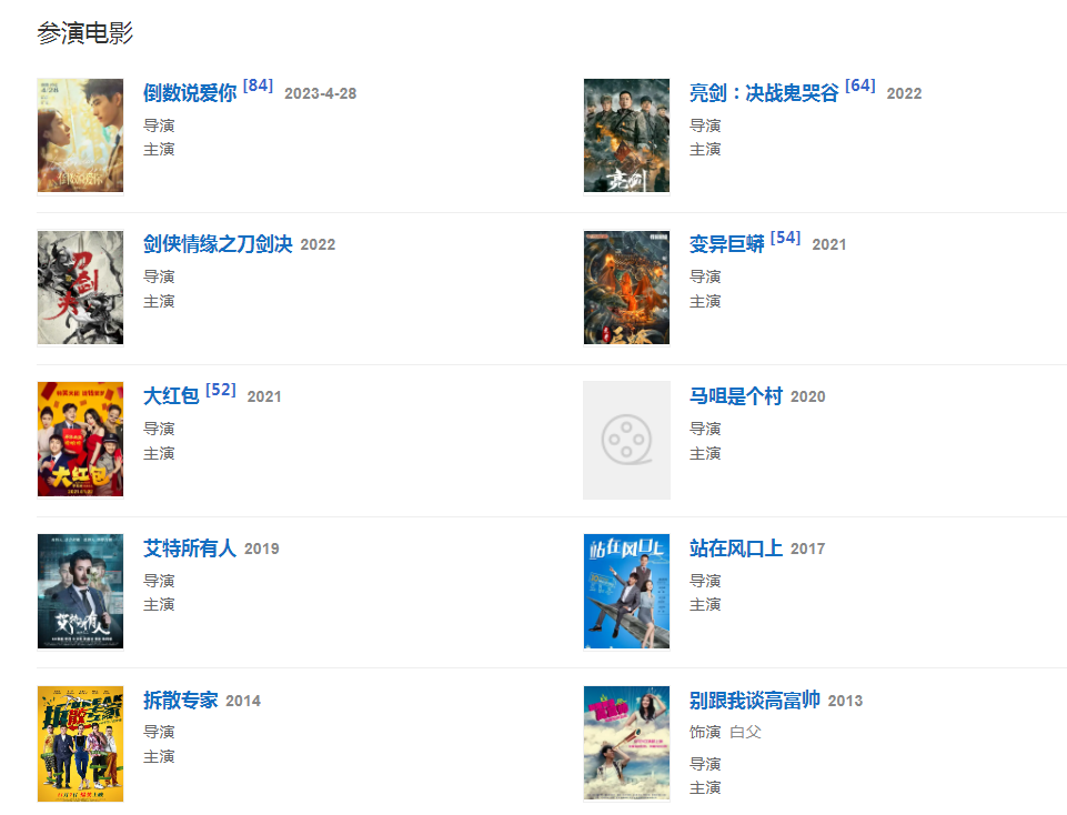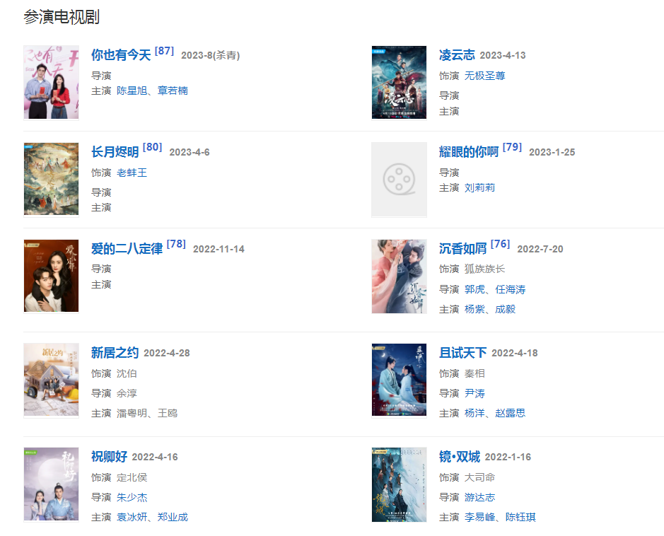 代表作品:《青青河邊草》《蒼天有淚》《風(fēng)雨桃花鎮(zhèn)》、《換女成鳳》、《古劍奇譚》