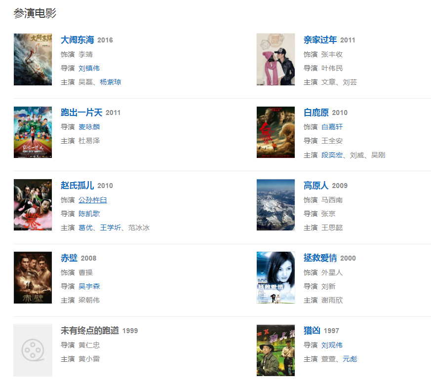 代表作品:駱駝祥子、人民的名義、赤壁、和平年代、歷史的天空、霸王別姬、武媚娘傳奇、白鹿原、長(zhǎng)沙保衛(wèi)戰(zhàn)