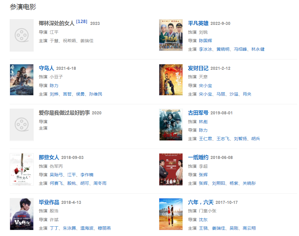 代表作品:家有兒女、余罪、柒個(gè)我、春風(fēng)十里不如你