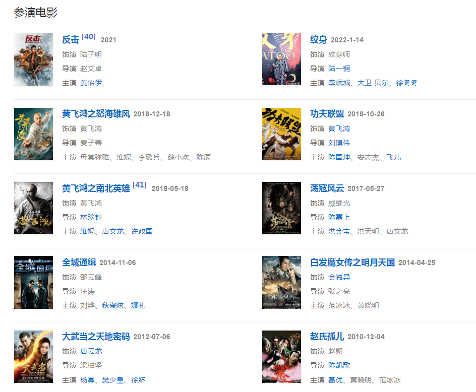 代表作品:黃飛鴻之王者之風(fēng)、蘇乞兒、斷刀客、風(fēng)云、生死拳速、中華大丈夫、青蛇、霍元甲