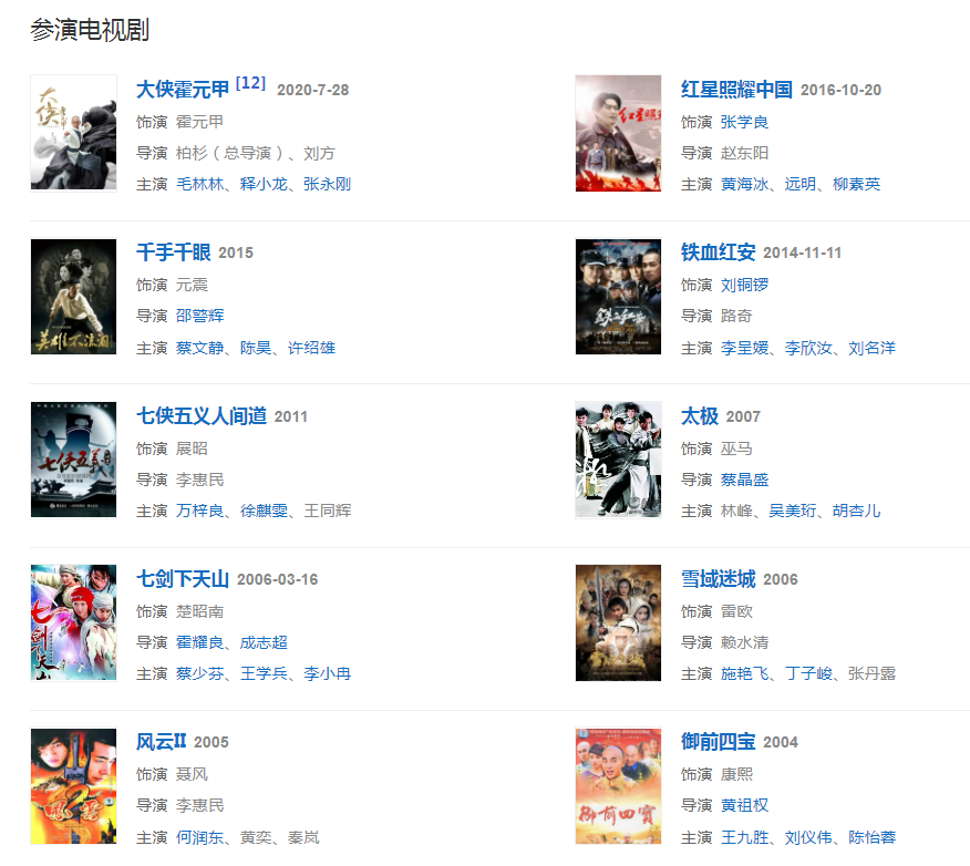 2002年,主演電視劇《風(fēng)云雄霸天下》。