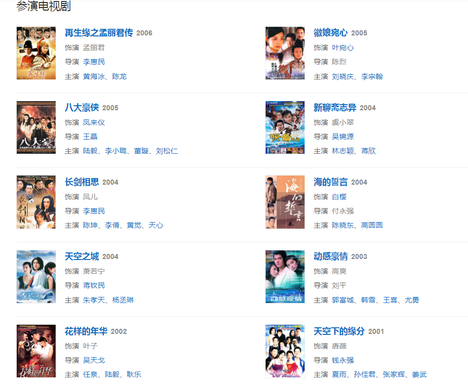 2005年憑借電影《獨(dú)自等待》獲得第25屆中國電影金雞獎(jiǎng)最佳女主角提名  ;同年主演電視劇《八大豪俠》。
