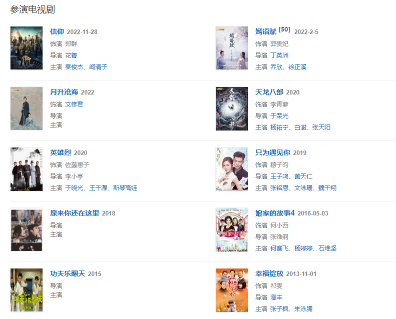 1995年,參演首部電視劇《傳奇人生》,正式進(jìn)入娛樂圈。