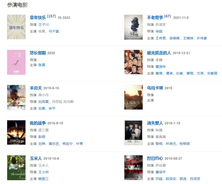 20159月,在戰(zhàn)爭電影《我的戰(zhàn)爭》中飾演孟三夏  。