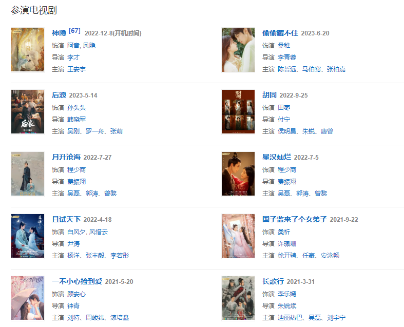 代表作品:傳聞中的陳芊芊、長歌行、且試天下、我,喜歡你、哦!我的皇帝陛下