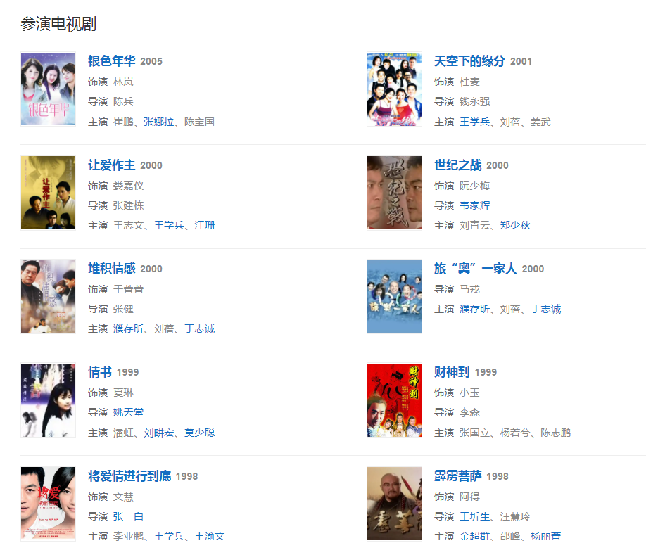 1994年,主演電視劇《同桌的你》進(jìn)入影視圈。