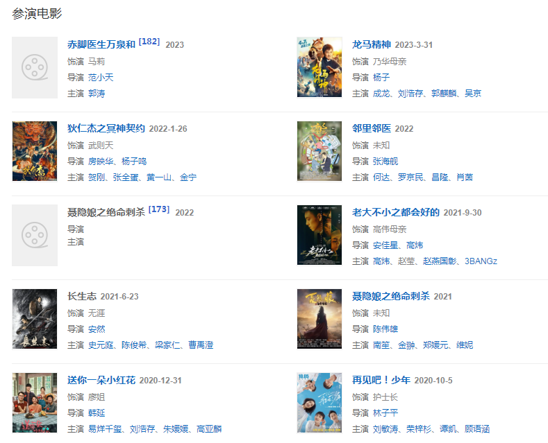 2022年,在電影《狄仁杰之冥神契約》中飾演武則天。