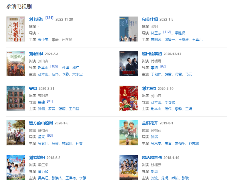 代表作品:劉老根、笑笑茶樓、女人當(dāng)官、小姨多鶴、我家的春秋冬夏、俺娘田小草