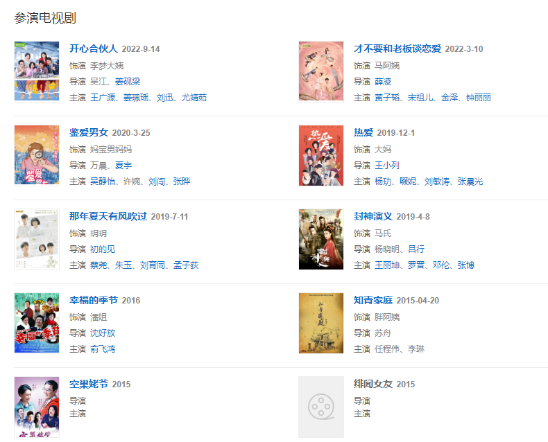 2007年,在宋丹丹主演的電視劇《家有兒女4》中飾演胖嬸。