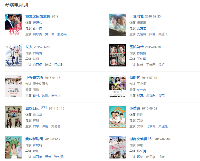 代表作品小爸爸、失戀33天、時(shí)尚女編輯、我叫郝聰明、醫(yī)館笑傳、長(zhǎng)大
