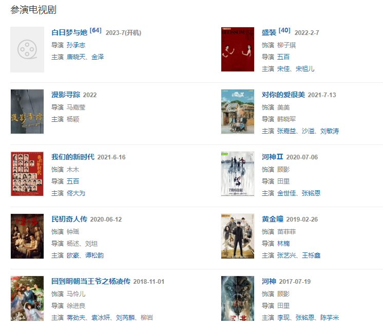 2016年7月,主演都市情感劇《致青春》 ;7月,主演古裝劇《回到明朝當(dāng)王爺之楊凌傳》。