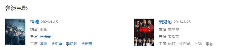 20211月,主演的懸疑犯罪電影《緝魂》上映  ;