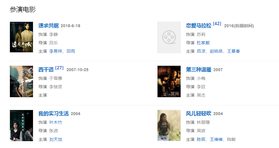 代表作品:愛是一顆幸福的子彈、北平無戰(zhàn)事、第三種溫暖、平淡生活、愛在蒼茫大地、西干道