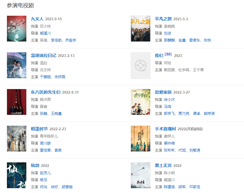 2022年2月23日,參演的都市情感劇《相逢時節(jié)》播出,在劇中飾演青年時期陳昕兒;3月27日,參演都市情感劇《追愛家族》播出,在劇中飾演勇敢追求美好生活的徐小沐;5月30日,社會懸疑刑偵劇《黑土無言》官宣陣容。6月21日,古裝仙俠劇《仙劍》官宣陣容,在劇中飾演趙靈兒;8月31日,特別出演的都市生活輕喜劇《東八區(qū)的先生們》播出。同年,搭檔張彬彬、代旭、劉敏濤領(lǐng)銜主演都市醫(yī)療劇《手術(shù)直播間》。
